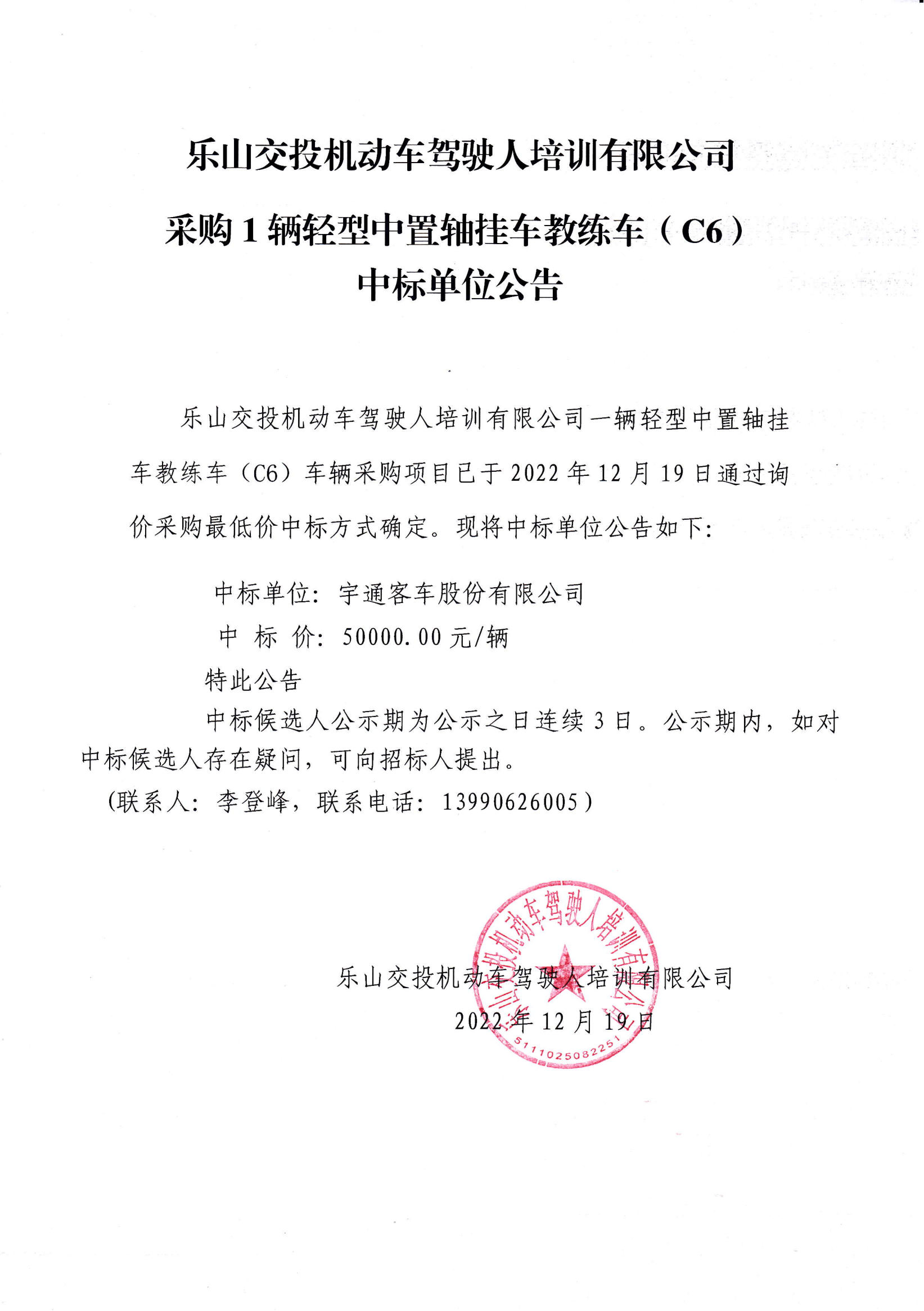 乐山交投机动车驾驶人培训有限公司2022年度教练车采购意向公告