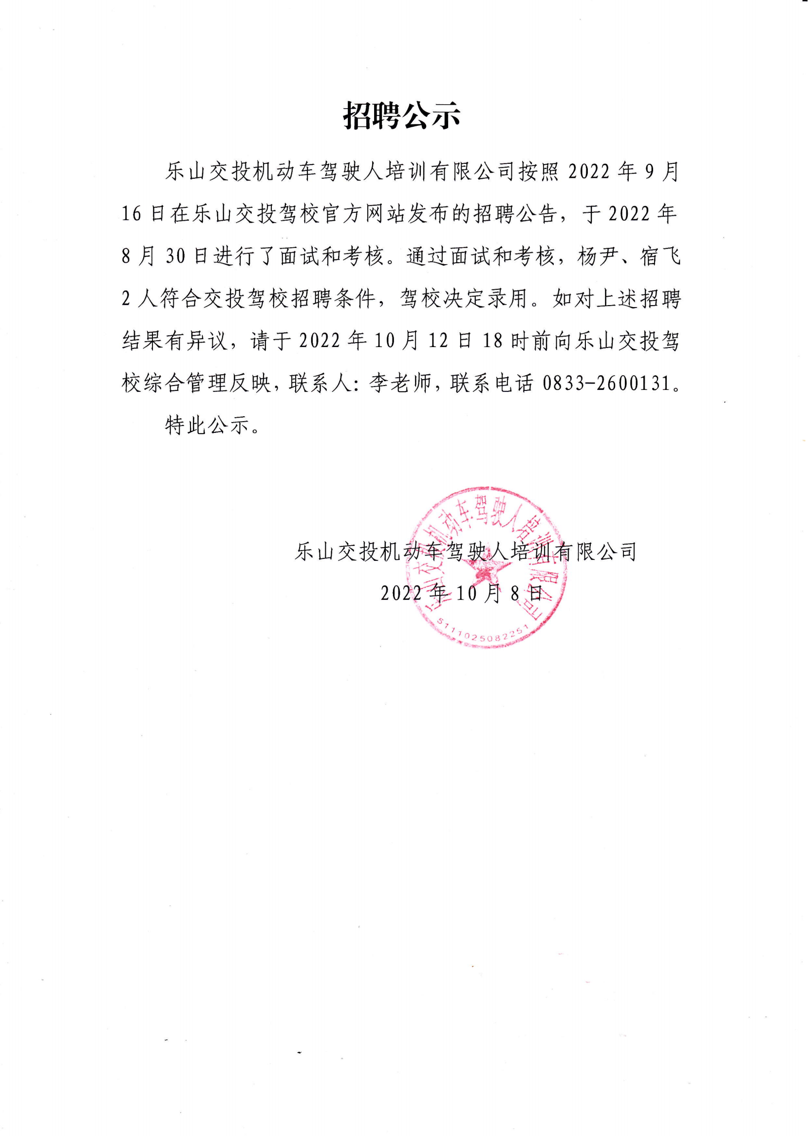 乐山交投机动车驾驶人培训有限公司公开招聘教练员公告